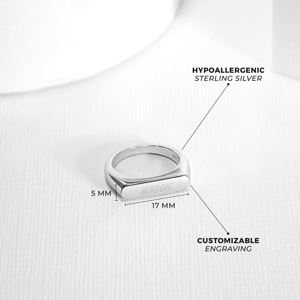Elevate your style with our exquisite signet bar women's in 925 sterling silver, the perfect accessory to make a statement and add a touch of elegance to any outfit. Crafted with precision and designed for women who appreciate fine jewelry, this stunning ring can be personalized with custom engravings to make it truly yours. Whether you're looking for a unique gift or a timeless addition to your own collection, our Signet Bar Women's Ring in Sterling Silver is the epitome of sophistication and individuality.