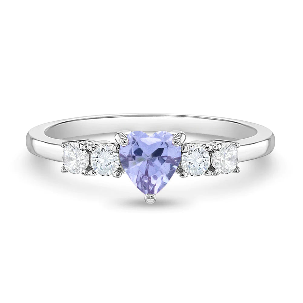 Introducing a charming and enchanting child's ring that will make any little one feel special. This exquisite ring features a simulated birthstone heart-shaped gem at its center, nestled on a solitaire base, exuding a sense of elegance and innocence. Surrounding this radiant heart-shaped stone are sparkling clear cubic zirconia stones, adding a touch of shimmer and brilliance to this dainty piece. Crafted with care and precision, this ring is made from high-quality 925 sterling silver, ensuring both durability and a timeless shine. A perfect gift to celebrate a child's birth month or any special occasion, this ring captures the essence of innocence and beauty, making it a delightful addition to any young one's jewelry collection.