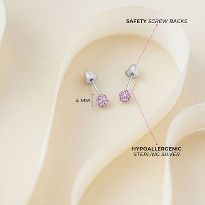 Charm the young girl in your life with this pair of sparkling fireball CZ earrings. These quality children's earrings are covered in tiny cubic zirconia stones which are sure to enchant her little imagination. The fun girl's earrings are crafted entirely in 925 sterling silver and cubic zirconia stones, making them hypoallergenic and safe for children with sensitive ears. They feature a threaded earring post and back to ensure your child's earrings stay safely and comfortably in place. A complimentary gift box is included.