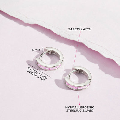 Add a pop of sparkle to your girls outfit with our CZ hoop earrings for girls. Made from 925 sterling silver, these cubic zirconia hoop earrings are a perfect match to your little girl's personal style. Hoop earrings are versatile and they are perfect for formal or casual occasions. Made entirely in 925 sterling silver, these huggie hoops are perfect for girls with sensitive ears.