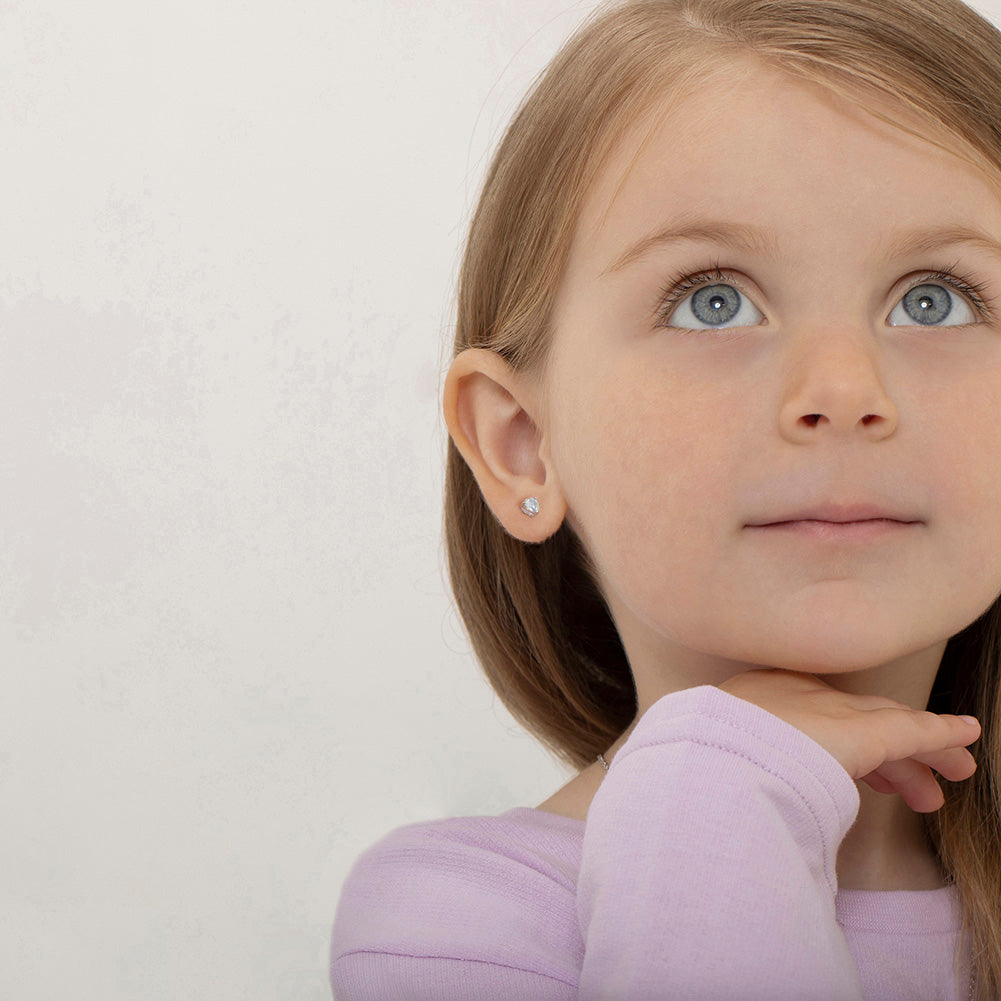 Our push back earrings have been designed with the utmost consideration for your child's safety. They are specifically crafted to provide a secure and snug fit, ensuring that the earrings stay in place securely. Push back earrings are popular due to their simplicity and ease of use. They provide a secure closure and are relatively comfortable to wear. We have a unique system to help ensure a secure earring, thus our earring backs only work on our safety push back sterling silver earrings.