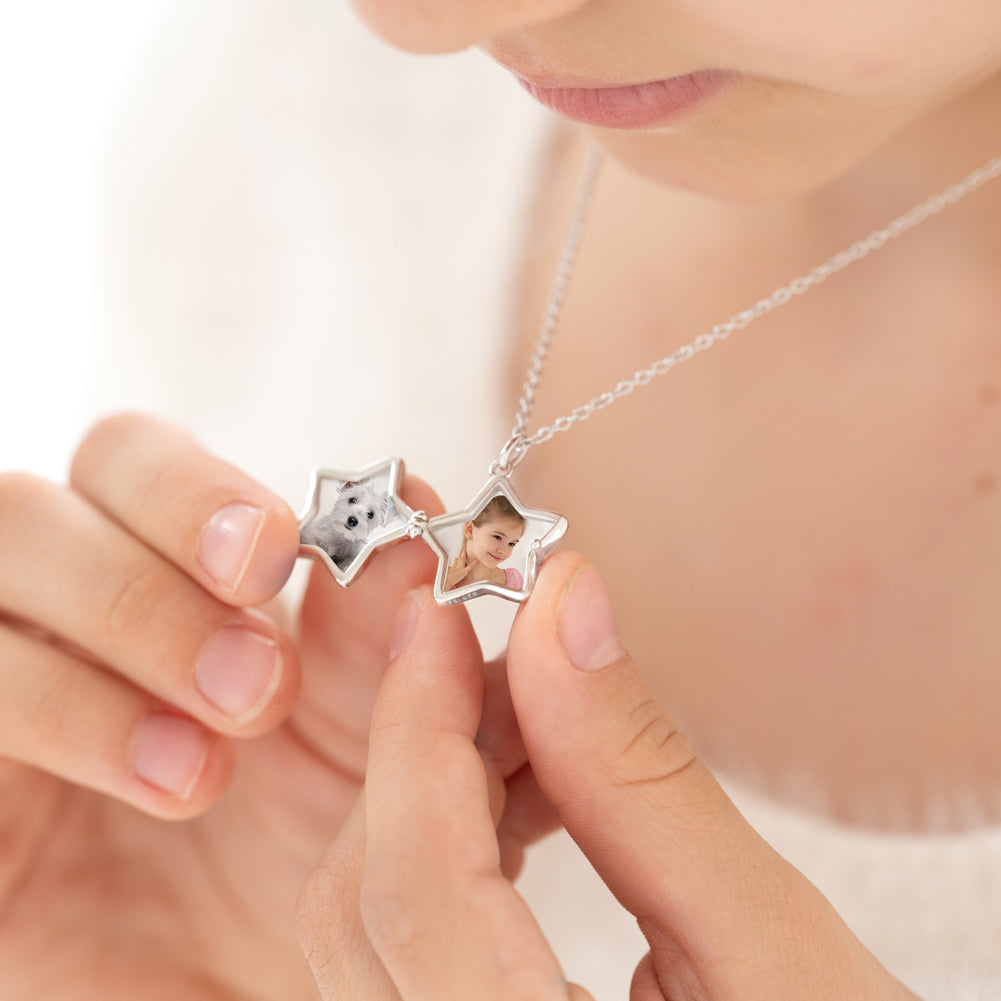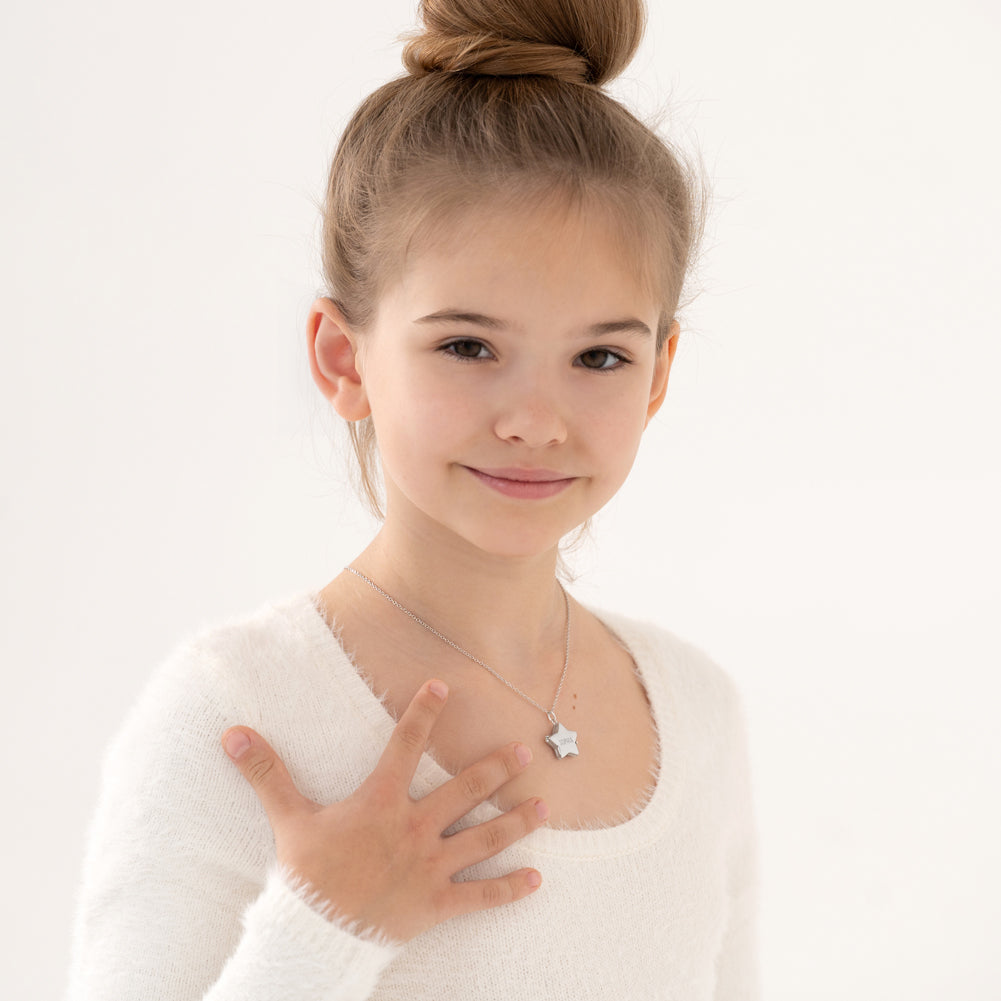 This enchanting locket, uniquely crafted in the shape of a star, is a beautiful keepsake for a little girl. Made from 925 sterling silver, this locket is hypoallergenic and safe for children, ensuring it can be cherished for years to come. The locket can be personalized with an engraving, allowing for a special name or date to be added, making it a truly one of a kind star locket. The center of the locket opens to reveal a space where a cherished photo can be placed, keeping treasured memories close to the heart. This beautiful star-shaped locket combines elegance and sentimentality, creating a timeless gift for any special occasion. A small gift box is included with purchase.