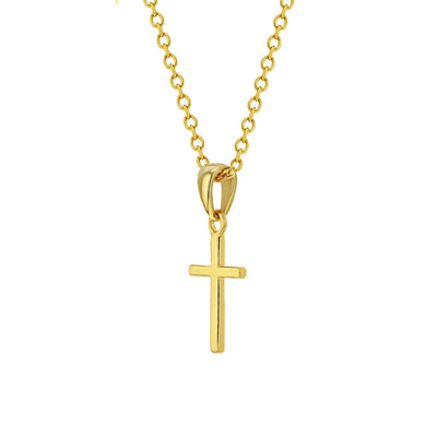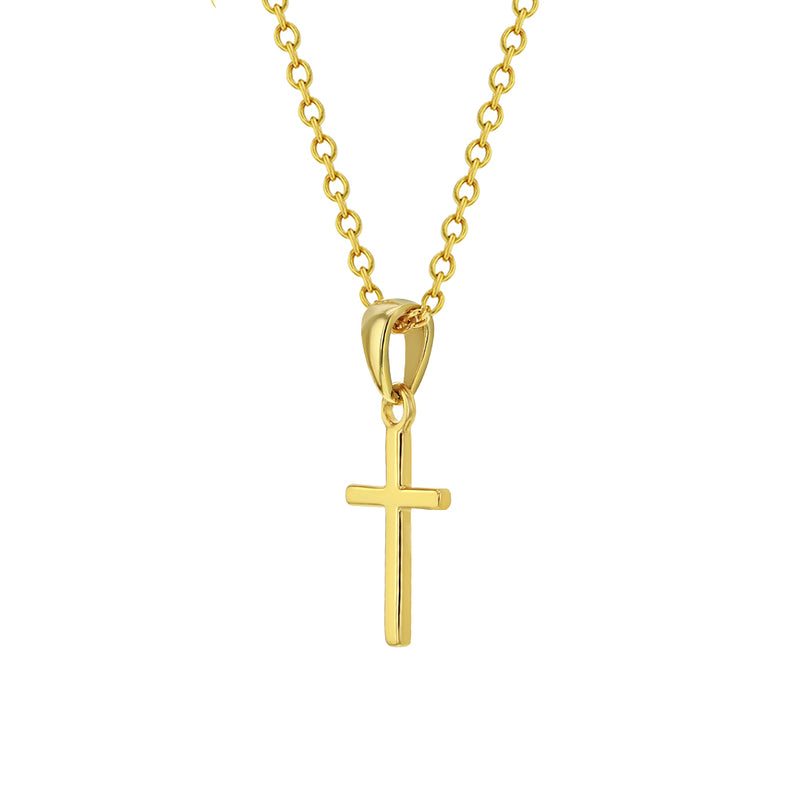 This beautiful sterling silver petite cross shaped pendant necklace is a unique gift that will be cherished forever. Made with a yellow gold flashed 925 sterling silver, this necklace is made from hypoallergenic material suitable for children with sensitive skin. Perfect for a loved one on a First Holy Baptism, Christening, First Holy Communion, First Reconciliation or Confirmation. A matching 16" sterling silver chain is included and packed neatly in a complimentary gift box.