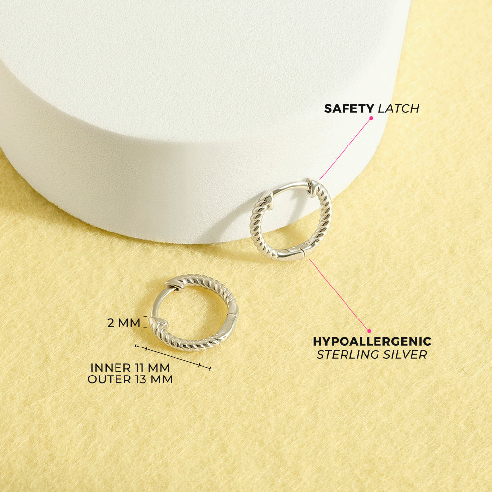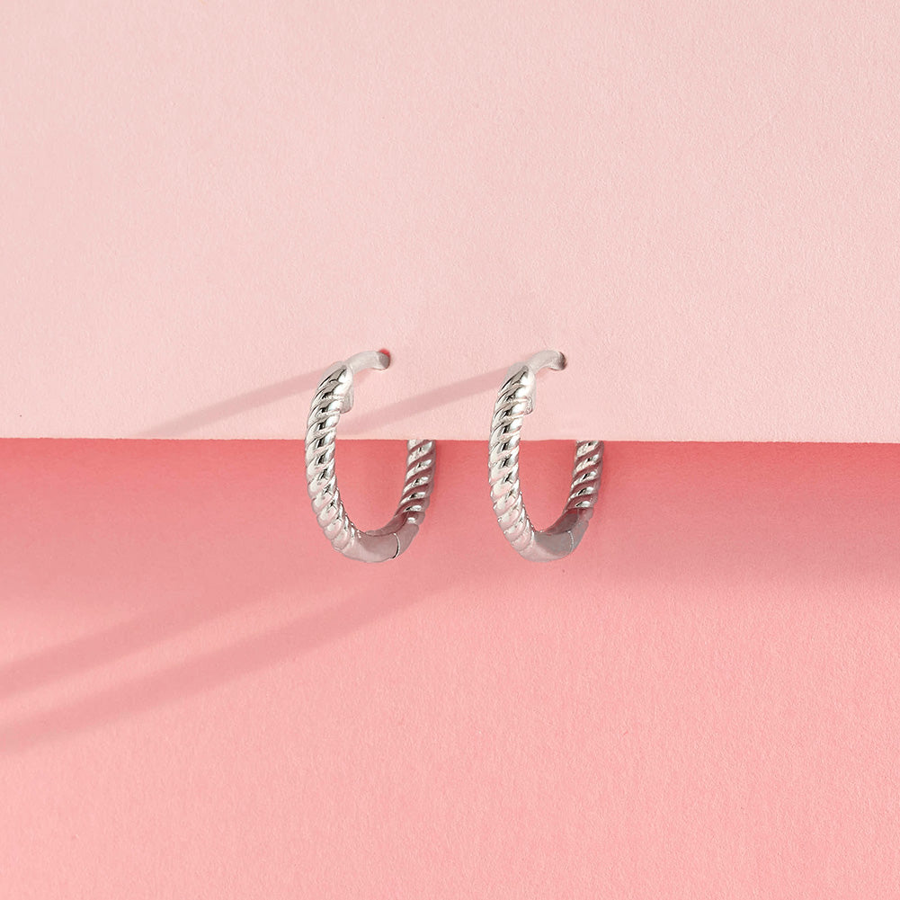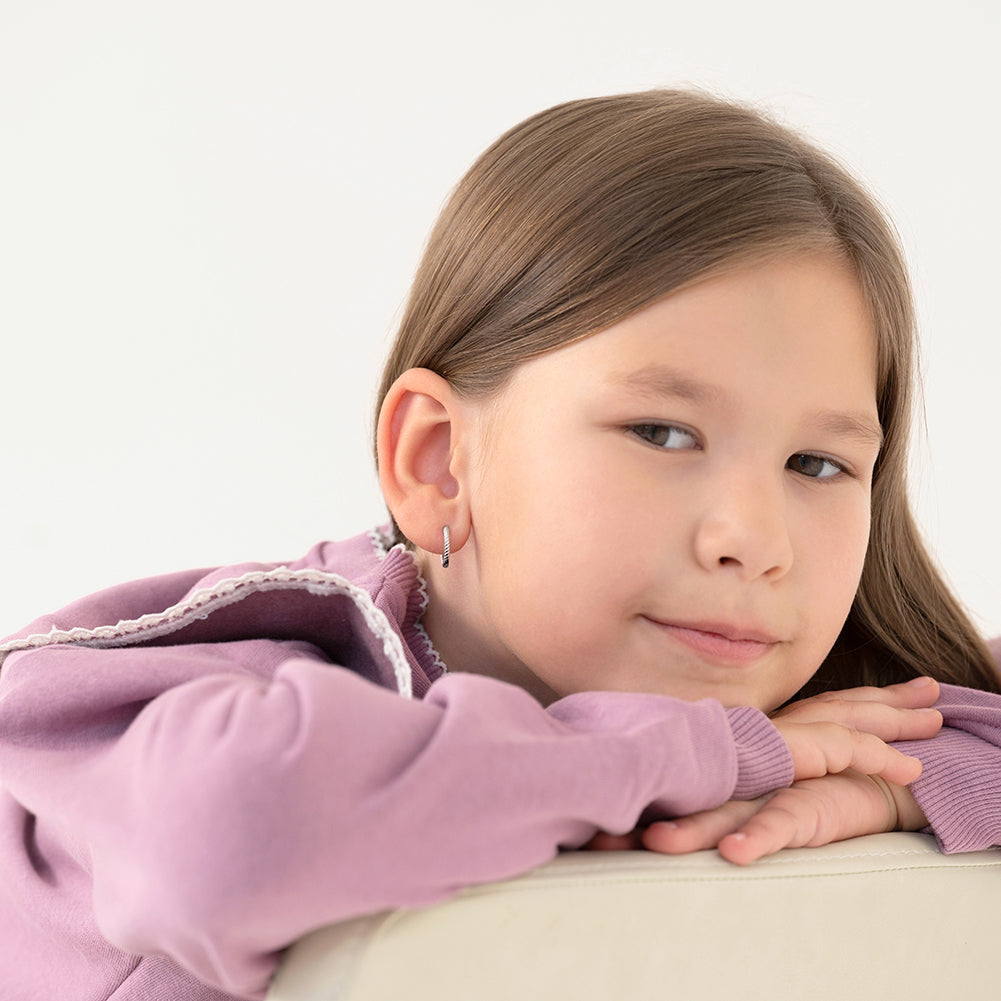 An intricate and twisted rope designed hoop earring for a young girl to wear on her special day. This lightweight hoop girl earrings are finely crafted from a hypoallergenic 925 sterling silver, which is a material that is safe for young girls with sensitive ears. A beautiful roped design hoop earring for a girl to receive on her birthday. A gift box is included with purchase.